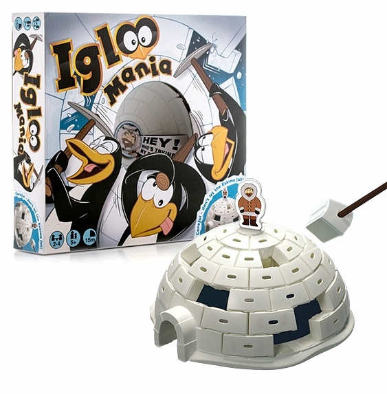 Иглу Мания - замечательная настольная игра, разработанная по принципу популярной Дженги. Перед началом игры необходимо правильно собрать купол, обратив внимание на цифры, указанные на каждом блоке. Блоки с цифрой 1 выставляются в самом низу, с цифрой 2 - над первым рядом и так далее, пока финальная деталь не будет находиться на самой верхушке.