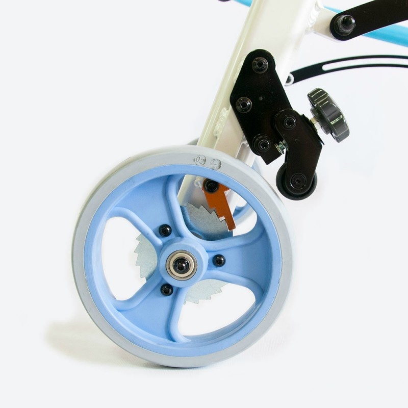 Подлокотные опоры и ручки регулируются и снимаются. Рама роллатора произведена из алюминия, конструкция оборудования складного типа, что обеспечивает удобное хранение и транспортировку.