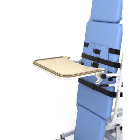 Столик поддерживает пациента в процессе вертикализации. Регулируется по углу наклона и расстоянию от ложа. При необходимости может быть демонтирован. Благодаря регулировкам, можно легко настроить столик под рост, комплекцию пациента, а также установить необходимый для конкретных задач угол наклона.