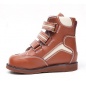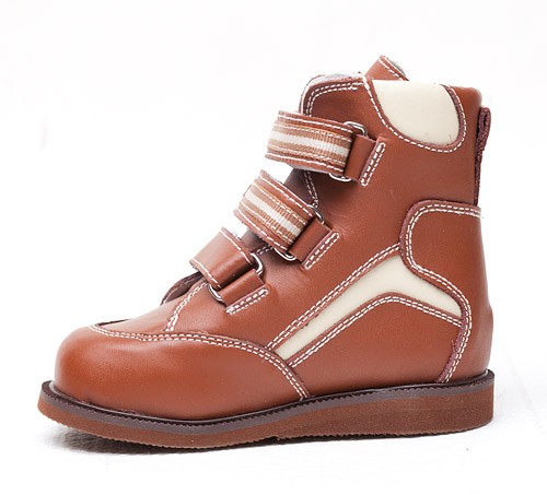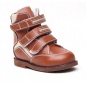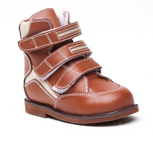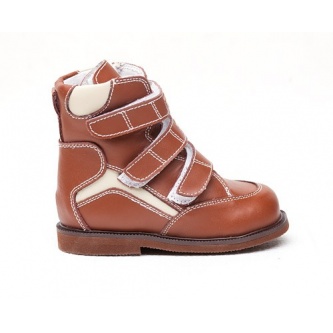 Ортопедические детские ботинки ОТ-402 с супинатором имеют прекрасные антивальгусные качества, что помогает таким детям, у которых наблюдается диагноз вальгусная деформация стоп. Модель обуви предназначена для носки осенью или зимой и является очень удобной и теплой, застежки на тройной липучке. Верх обуви изготовляется из кожи, так же как и подкладка, а подошва – из этиленвинилацетата (материал EVA), что обеспечивает легкость и прочность, плюс вставки из пористой резины для улучшения амортизации.