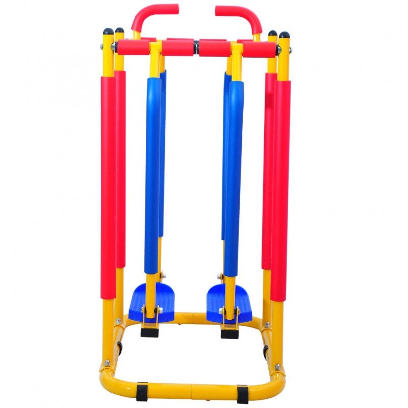 Тренажер предназначен для использования в домашних условиях и детских учреждениях. Оборудование компактно и не занимает много места, его легко можно установить в детской комнате. Стильный и современный дизайн тренажера отлично пишется в любой интерьер. Прочная конструкция обеспечивает безопасность и надежность для ребенка во время занятий. Рама окрашена в яркие цвета, на передней части расположены удобные поручни с нескользящим покрытием.
