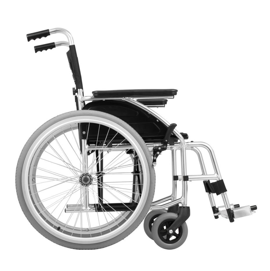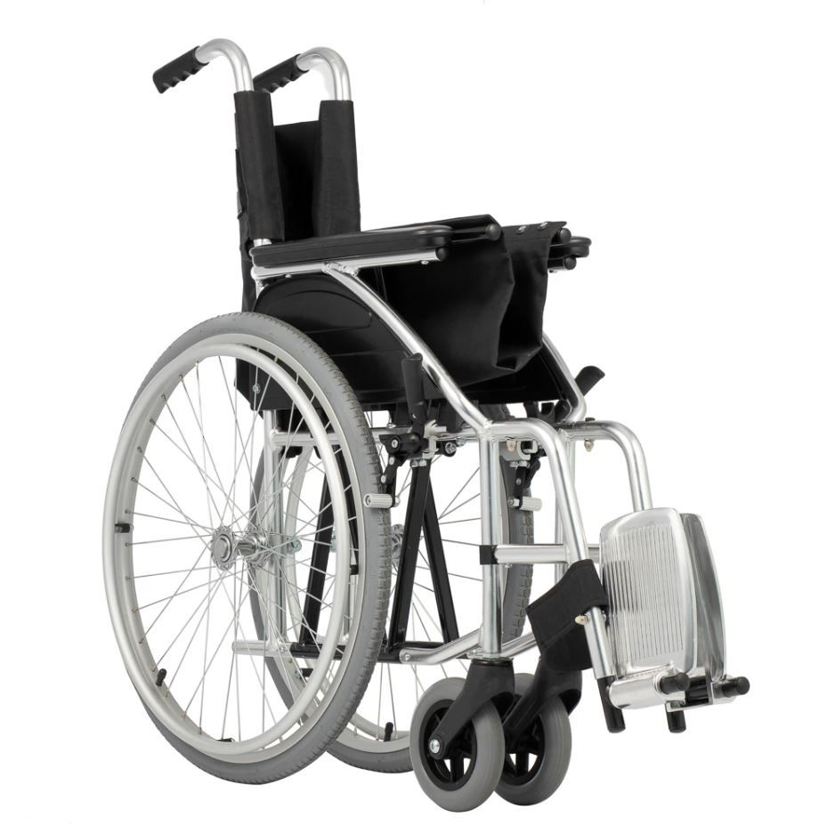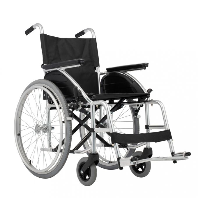 Легкая инвалидная коляска на алюминиевой раме может использоваться в качестве домашней или прогулочной. Имеет регулируемые подножки с откидными упорами для стоп, лента из ткани обеспечивает удобный упор для голеней. На задних колесах имеются стояночные тормоза, предусмотрен упор и рукоятки для сопровождающего лица.