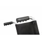 Достоинства:передние колеса цельнолитые, задние – можно снять за пару секунд. Материал обивки хорошего качества.