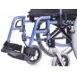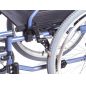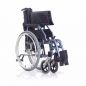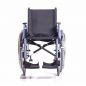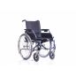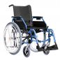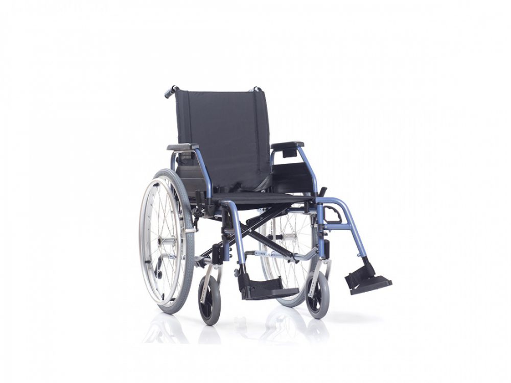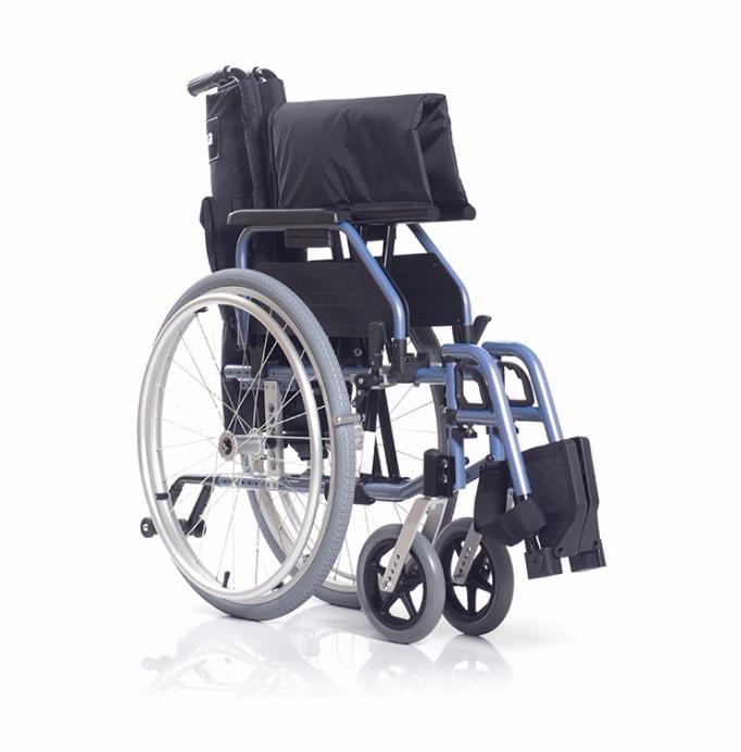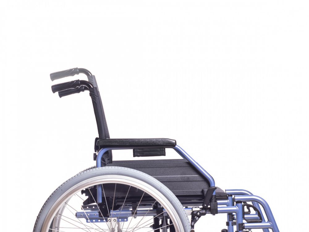 Коляска легко управляется одной рукой. Кресло оснащено откидными опорами для рук, подножками, оборудованными текстильной лентой, откидными опорами для поддержки стоп. Высота сидения регулируется сменой положения колес.