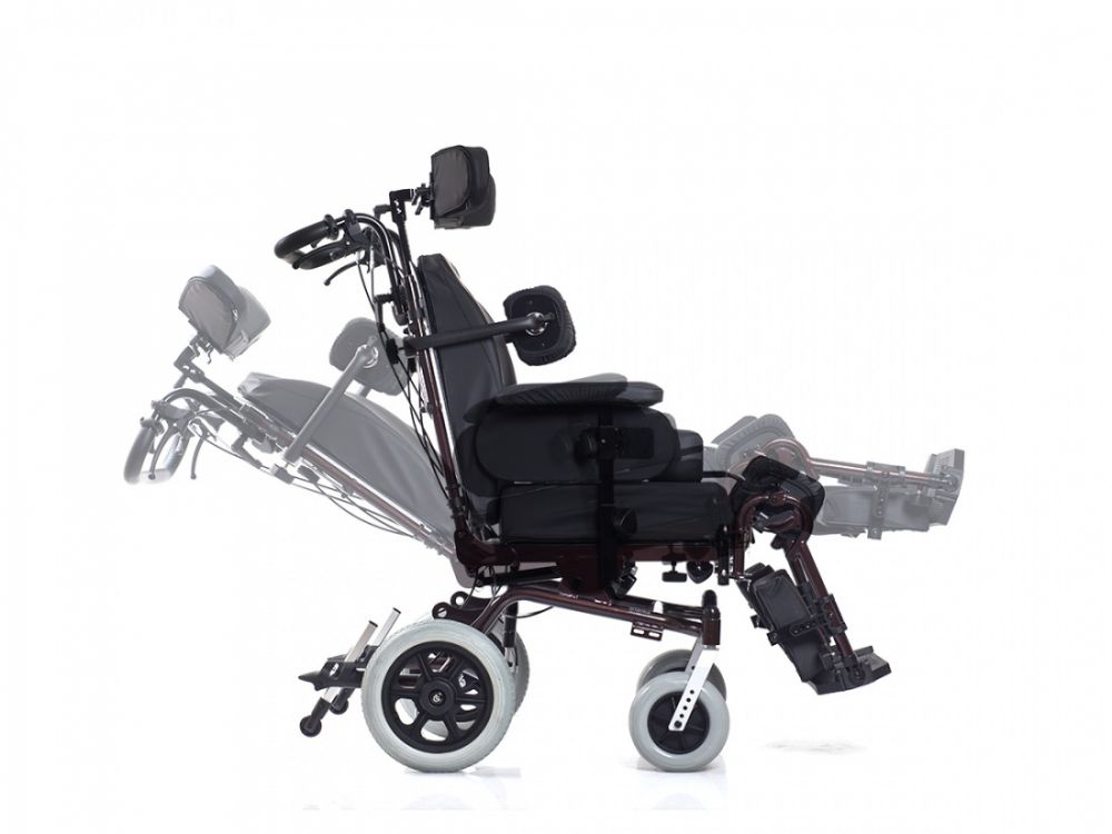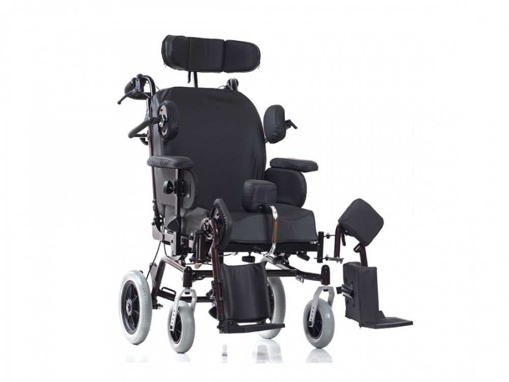 Инвалидное кресло-коляска Delux 570S с системой регулировок для максимально комфортного положения. Предназначено для пользователей с частичной или полной потерей функций двигательного аппарата, в том числе для больных ДЦП.