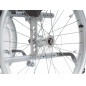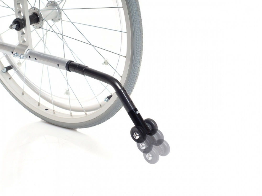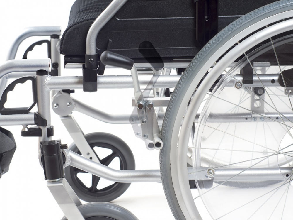 Алюминиевый каркас коляски покрыт защитным составом, предотвращающим распространение коррозии. Рукоятки для сопровождающего лица имеют анатомические насадки.