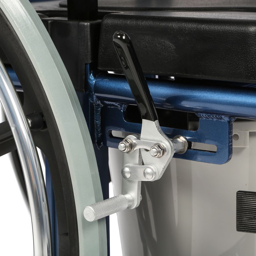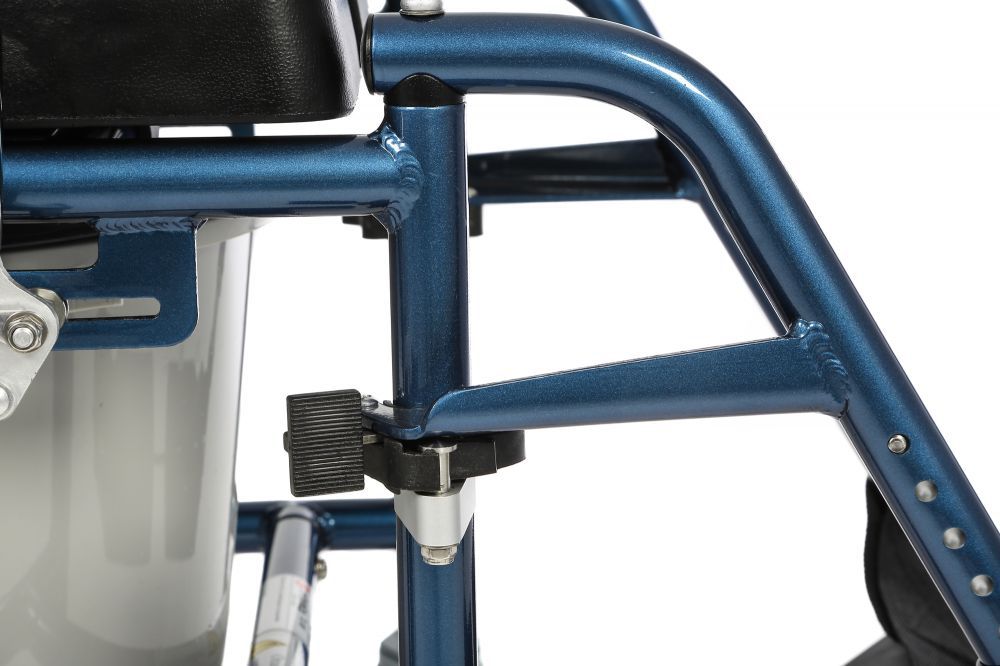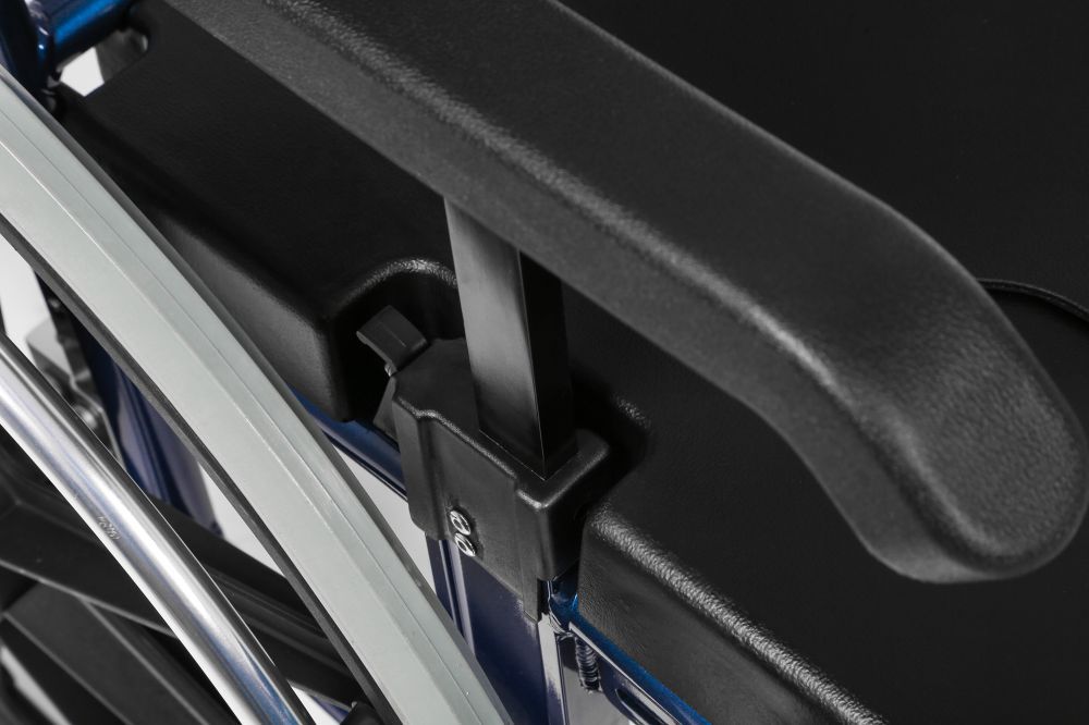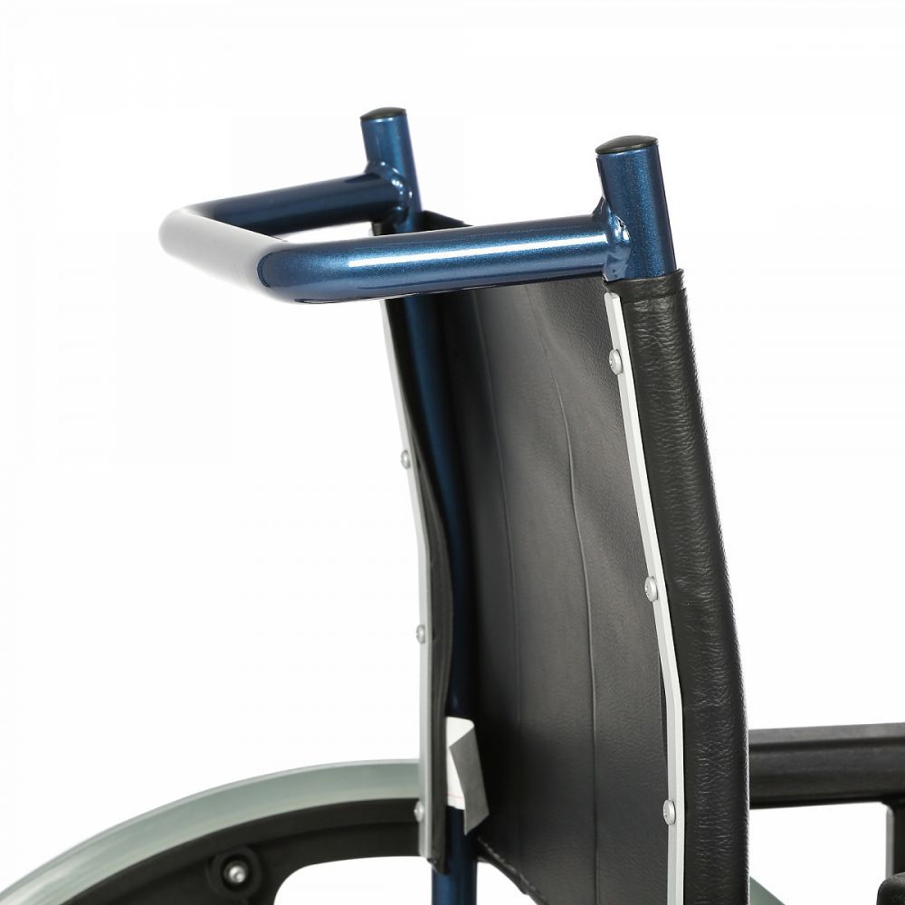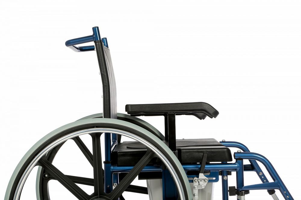 Управление коляской осуществляет сопровождающий или сам пользователь. Ручка для толкания цельная. Санитарное устройство — пластиковое, устойчиво к частой обработке дезинфицирующими веществами.