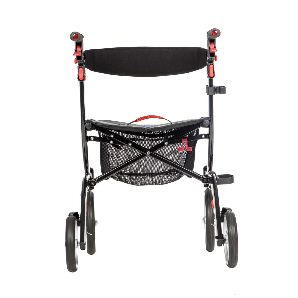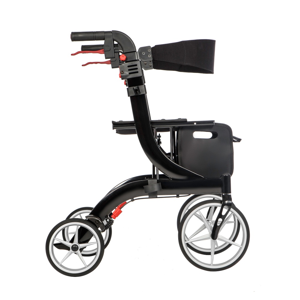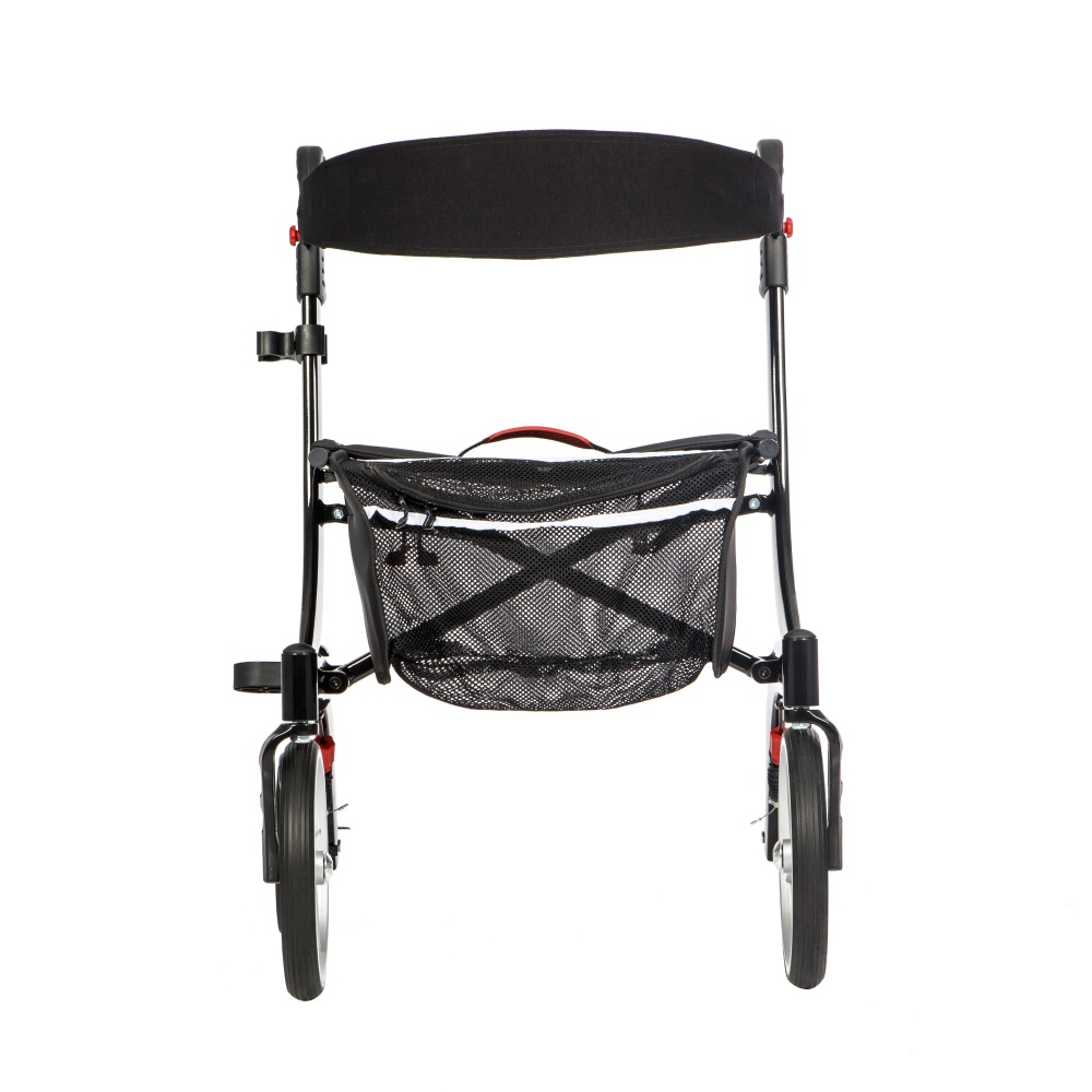 Прогулочные ходунки-роллаторы на четырёх колёсах предназначены для передвижения людей с ограниченными двигательными возможностями в помещениях и во время прогулок на улице. Конструкция выполнена из высокопрочного алюминиевого сплава. Складывается и раскладывается без инструмента. Ходунки-роллаторы оснащены мягким сиденьем, мягким упором для спины и корзиной для покупок.