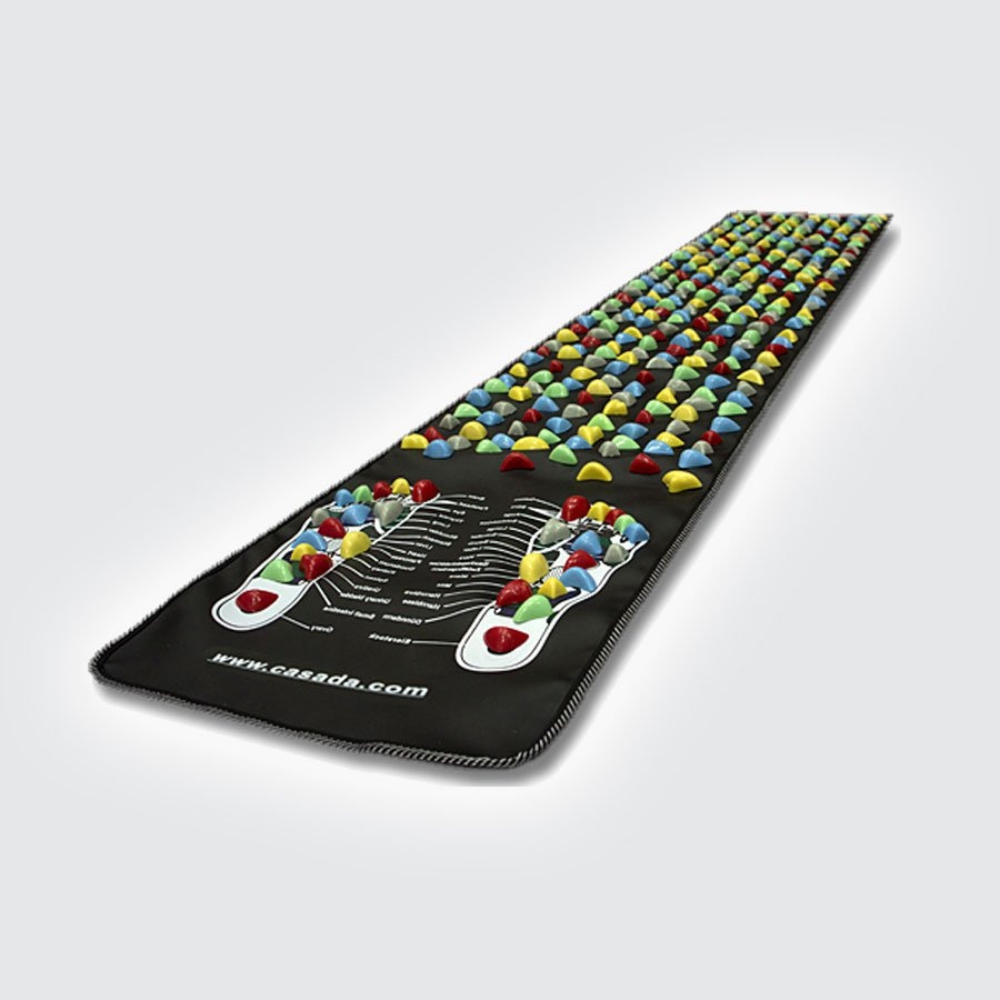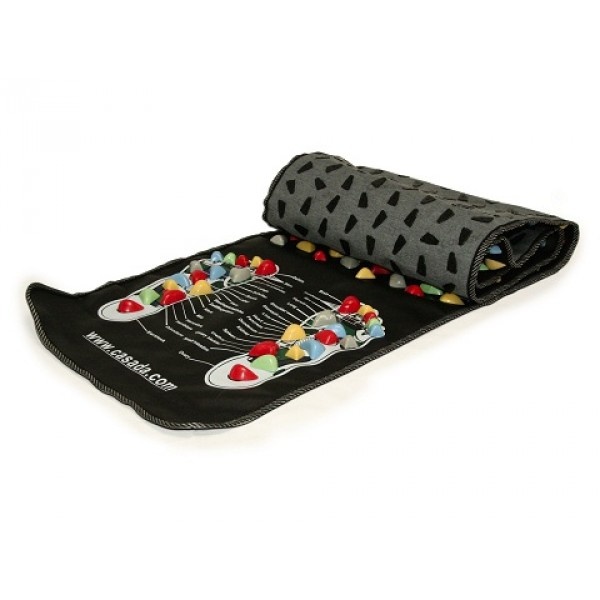 Ортопедический коврик для ног Casada ReflexMat представляет собой плотное полотно с массажными камушками разного размера, цвета и формы. Накладные элементы создают эффект ходьбы по морской гальке.