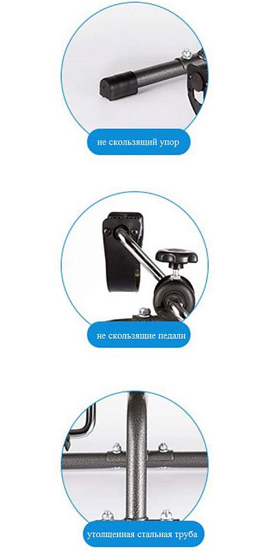 Для людей с разными физическими возможностями предусмотрен регулятор прилагаемого усилия, задающий требуемую скорость вращения педалей. В результате тренировок ослабленные мышцы придут в оптимальную форму, улучшиться кровообращение в конечностях, увеличится выносливость и сформируется полезная привычка к ежедневным нагрузкам.