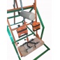 Подножка регулируется по высоте. На подножке расположены крепления для стоп типа "сандалии", позволяющие независимо отрегулировать положение каждой стопы (регулировка "влево-вправо"и "вперед-назад"). Коленные крепления независимо регулируемые в 3 плоскостях (по глубине, расстоянию между коленями и высоте), расположены на раме вертикализатора.