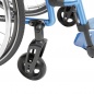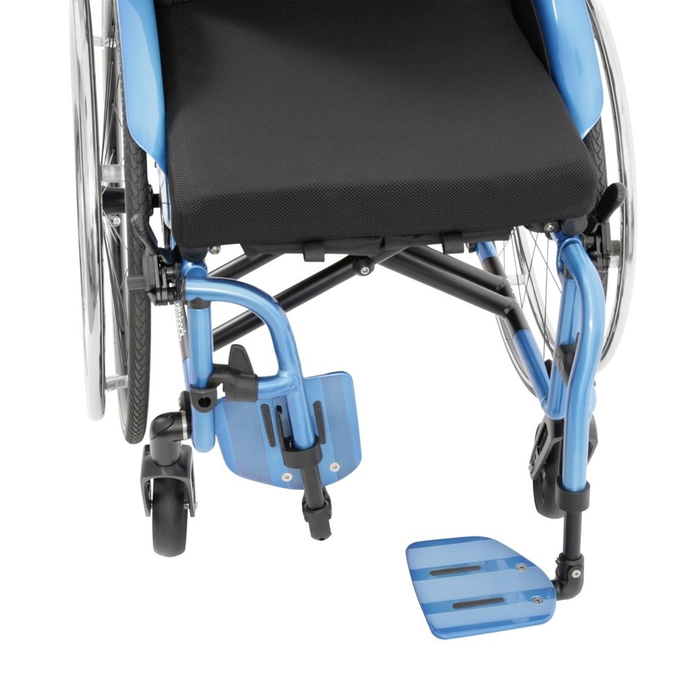 К особенностям модели можно отнести вертикальное расположение передней части рамы. Откидывающиеся, быстросъемные подножки позволяют человеку максимально близко подъезжать к мебели, кровати или ванне, облегчает процесс пересаживания.