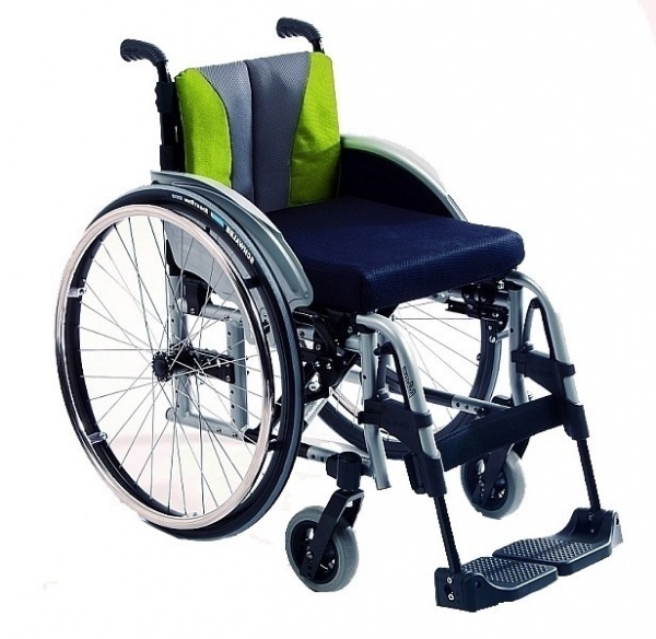 Возможность индивидуальной настройки положения ведущих колес облегчает задачу самостоятельного управления коляской. Базовые колеса снимаются без применения инструментов. Легкая и надежная складная конструкция, выполненная из дюралюминия, весит от 15 кг. Коляска в сложенном виде легко помещается в багажник авто.