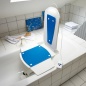Подъемник Otto Bock КАНЬО создан для поддержки пациентов, имеющих ограничения функциональных навыков, во время приема ванны. Подъемник оснащен электроприводом, контролирующим высоту устройства. Управления осуществляется двумя кнопками дистанционного пульта. Устройство производит плавный подъем пользователя и безопасный спуск. Каркас устройства покрыт защитным напылением. Не скользящая поверхность подъемника безопасна, хорошо очищается, пригодна для дезинфекционной обработки. Устройство крепиться к дну ванны четырьмя присосками.