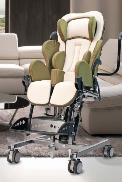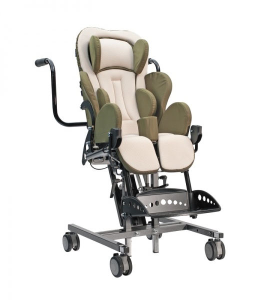 Кимба - специализированное кресло-коляска, предназначено для детей с ДЦП и проблемами опорно-двигательного аппарата возрастом от 4 до 10 лет. Данная модель предусматривает возможность смены положения ребенка - из активного в положение отдыха. Кресло можно оборудовать различными дополнительными опциями, исходя из потребностей пользователя.