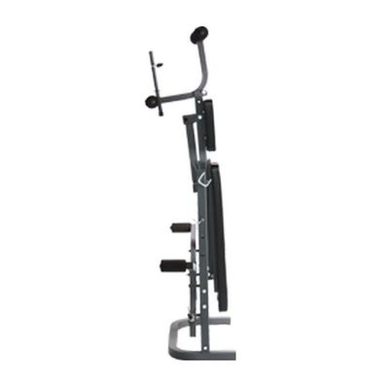 Удобная складная скамья Boston III для жима от груди со стойками под штангу, тренажером для ног и баттерфляем.