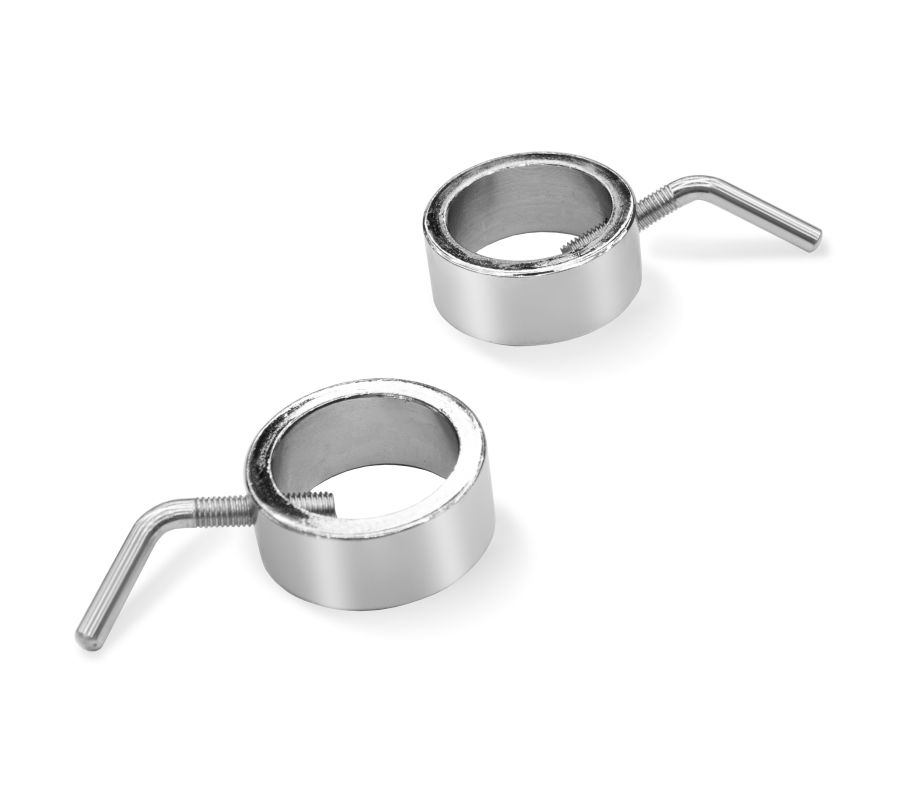 Чугунные блины с антикоррозионным покрытием имеют шероховатую поверхность для защиты от скольжения. Хромированные грифы с рельефной рукояткой обеспечивают надежность хвата и предназначены для блинов с посадочным отверстием 30 мм. Резьбовые замки с хромированным покрытием обеспечивают быстрое и надежное крепление блинов на грифе. На замке установлено кольцо протектора из высокопрочной резины, которое предотвращает произвольное раскручивание замков и сход весов.