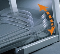 Тренировочный компьютер оснащен современным дисплеем диагональю 7 дюймов (17,5 см.) с голубой подсветкой. В число программ входят 15 предустановленных режимов, а также жироанализатор Body Fat. На поручнях консоли расположены "быстрые кнопки" доступа к изменению скорости и угла наклона. Гидравлическая система складывания easyFOLD™ значительно облегчает складывание дорожки, а при раскладывании обеспечивает медленное опускание полотна в последней фазе, гарантируя легкость и безопасность. Мультимедийная компонента представлена динамиками мощностью 5 Ватт с разъемами AUX (для подключения мобильных устройств) и USB (для подключения флешки).