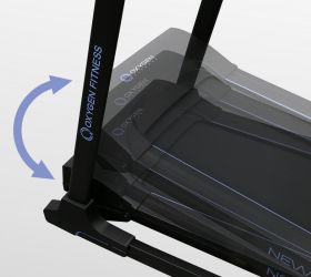 К другим особенностям дорожки относятся гидравлическая система складывания easyFOLD™, которая существенно облегчает складывание дорожки, а при раскладывании обеспечивает медленное опускание полотна в последней фазе, гарантируя безопасность. Перемещение дорожки происходит за счет 2-х транспортировочных роликов.