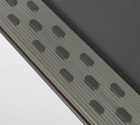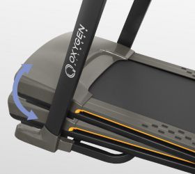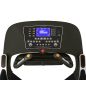 Тренировочный компьютер оснащен современным дисплеем диагональю 6.3 дюйма (16 см.) с голубой подсветкой и отображением тренировочных профилей. В число программ входят 24 предустановленных режима, а также жироанализатор Body Fat. На поручнях консоли расположены "быстрые кнопки" доступа к изменению скорости и угла наклона. При желании можно написать собственную программу тренировки и сохранить ее в одном из 3 режимов. Гидравлическая система складывания easyFOLD™ значительно облегчает складывание дорожки, а при раскладывании обеспечивает медленное опускание полотна в последней фазе, гарантируя легкость и безопасность. Мультимедийная компонента представлена динамиками мощностью 5 Ватт с разъемами AUX и USB для подключения мобильных устройств и воспроизведения с них аудио-файлов. Приятной опцией является подставка под планшет или смартфон.