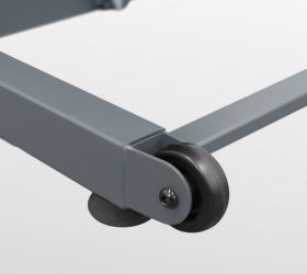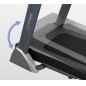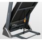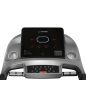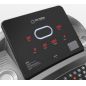 Тренировочный компьютер представлен суперсовременным дисплеем с черным акриловым экраном. Все клавиши работают по сенсорному принципу. Во время работы тренажера клавиши подсвечиваются различными цветами за счет внутренних светодиодов, то же самое касается тренировочных показателей. В нерабочем состоянии основной экран становится полностью черным без всякой индикации. Что касается программ, то всего их здесь 22. Из них 15 - встроенные программные профили, направленные на решение самого широкого спектра задач – от развития силы и выносливости до снижения веса и улучшения сердечно-сосудистой системы. Помимо предустановленных программ, можно воспользоваться самостоятельно регулируемым ручным режимом, а также создать собственную программу в одном из 3-ех пользовательских режимов. Три целевых режима направлены на достижение результата по одному из трех параметров (калории, расстояние или время). Гидравлическая система складывания safeFOLD™ значительно облегчает складывание дорожки, а при раскладывании обеспечивает медленное опускание полотна в последней фазе, гарантируя легкость и безопасность. Приятной опцией является подставка под телефон или планшет. Перемещение дорожки происходит за счет 2-ух транспортировочных роликов. Выровнять положение тренажера относительно поверхности можно за счет компенсаторов неровностей пола.