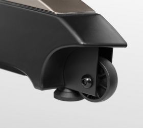 Тренировочный компьютер оснащен голубым дисплеем диагональю 12 см. В число самих программ входят 13 режимов, направленных на решение самого широкого спектра задач – от развития силы и выносливости до снижения веса и улучшения сердечно-сосудистой системы. Помимо предустановленных программ, можно воспользоваться самостоятельно регулируемым ручным режимом, а также создать собственную программу в одном из 2-ух пользовательских режимов. Есть здесь и 3 пульсозависимые программы с предустановленными значениями 55%, 75% и 90% от целевого максимального пульса. Для точного определения пульса и просто комфортной тренировки в компьютер встроен высокоточный беспроводной приемник. К другим особенностям дорожки относятся гидравлическая система складывания easyFOLD™, которая существенно облегчает складывание дорожки, а при раскладывании обеспечивает медленное опускание полотна в последней фазе, гарантируя легкость и безопасность. Мультимедийная компонента представлена динамиками 5 Ватт и AUX-входом для проигрывания музыки со смартфона. Встроенный вентилятор является отличным подспорьем в жаркие летние дни. Перемещение дорожки происходит за счет 2-ух транспортировочных роликов. Выровнять положение тренажера относительно поверхности можно за счет компенсаторов неровностей пола.
