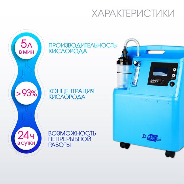 Кислородный концентратор JAY-5A способен производить от 1 до 5 литров воздушно-кислородной смеси в минуту с концентрацией кислорода 93 +/-3 %.