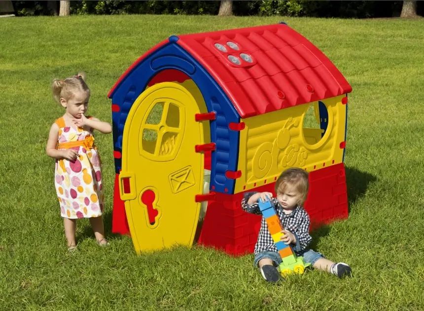Домик выполнен из высококачественного пластика, который безопасен для здоровья ребенка и не вызывает аллергии. Домик устойчив к воздействию солнечных лучей и других природных явлений. Данная модель отличается устойчивой и надежной конструкцией. Домик очень легко собирается, крепление деталей осуществляется при помощи специальных пластиковых гаек, поставляемых в комплекте.