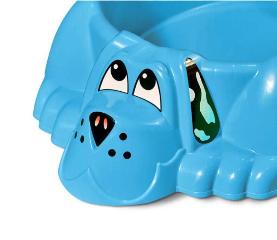Песочница выполнена в виде очаровательной собачки с лапками и веселой мордочкой. Собачка прекрасно подойдёт для детского отдыха на даче, на улице и в закрытых помещениях. Ее можно наполнить как песком, так и водой.