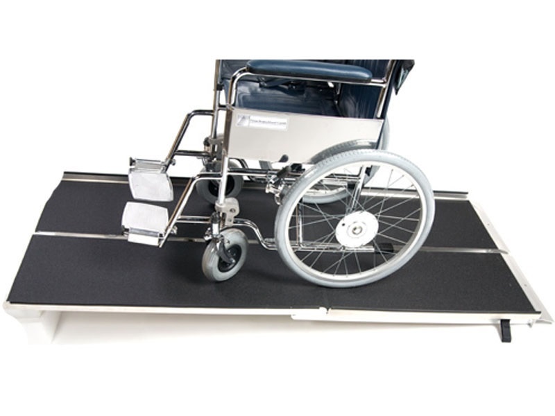 Пандус LY-6105-4-220 предназначен для оснащения зон спуска и подъема в местах, не оборудованных специальными приспособлениями для инвалидных колясок. Складная конструкция устройства упрощает процедуру транспортировки. В сложенном виде пандус занимает минимум места. Благодаря алюминию собственный вес конструкции очень мал. Пандус имеет не скользящее покрытие, исключающая случайное соскальзывание коляски. По бокам пандуса расположены бортики.