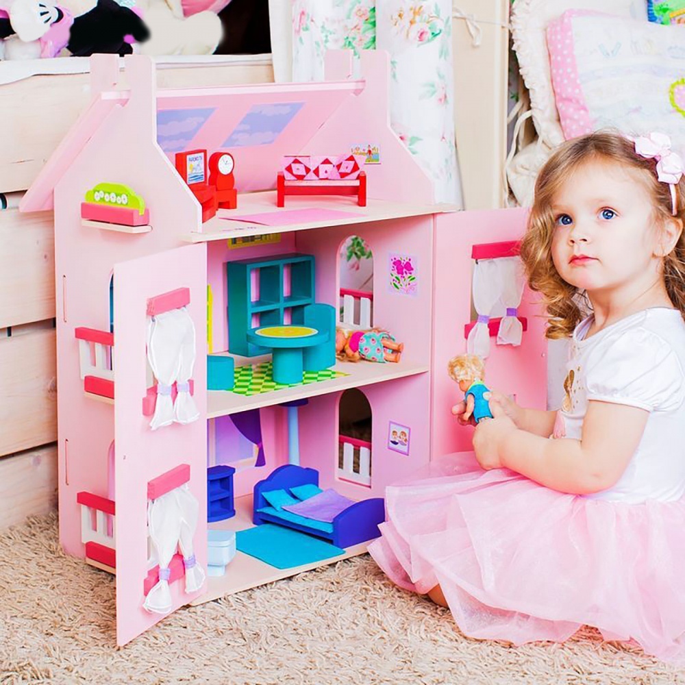 Кукольный домик "Милана" - очень нежный и романтичный кукольный домик выполнен в розовой цветовой гамме, украшен коралловыми орнаментами и укомплектован игровыми аксессуарами. В домике 2 основных этажа и 3-й мансардный.