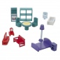 В комплекте раковина, унитаз, кровать, тумба, торшер, стол, 2 стула, кухонный стеллаж, плита, кровать, тумбочка, часы, тумба под телевизор, телевизор, 23 декоративные наклейки, 3 карниза для штор.