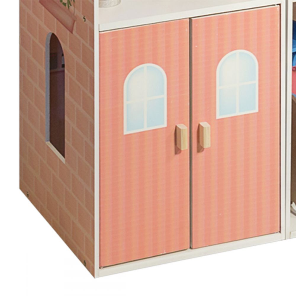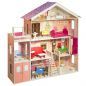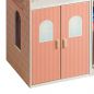 Фасады деревянного кукольного домика Моника окрашены в разные оттенки розового цвета. Крыши дома и гаража, а также боковые фасады насыщенного розового цвета. Внутренние стены дома окрашены в более мягкий розовый и белый тона.