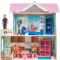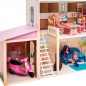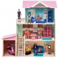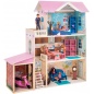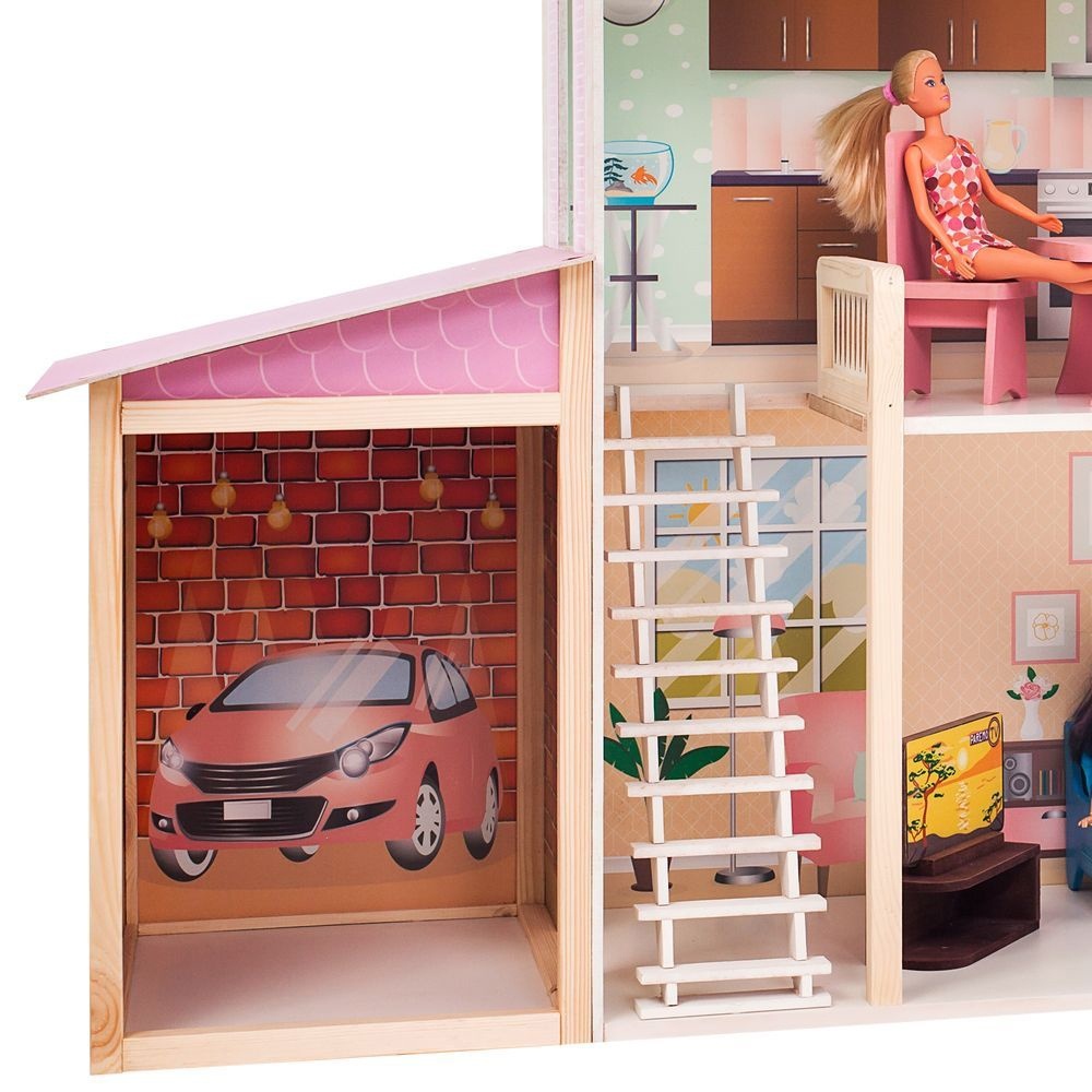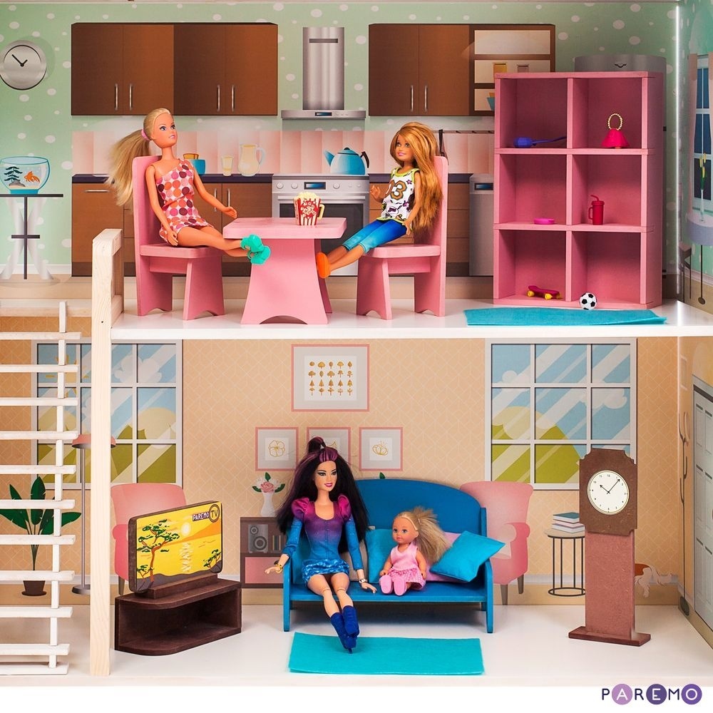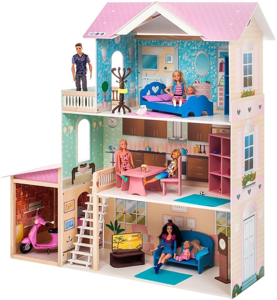 Домик, выполнен в современном стиле, в нежно розовом цвете, благодаря которому домик кажется воздушным. Игрушку отличает нежный, пастельный принт по дереву внутри дома с акцентом на нежно голубой цвет, который отлично сочетается с девичьим розовым, не одна девочка не останется равнодушной к данному подарку.