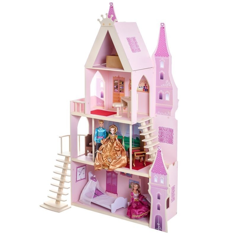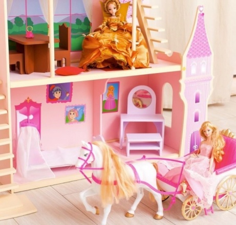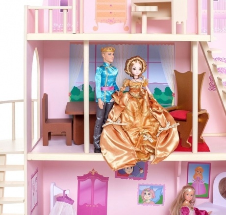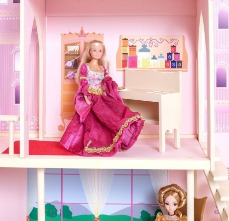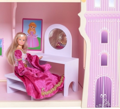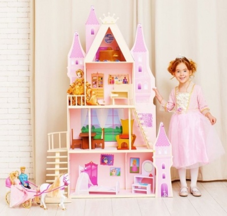 Дизайнеры компании создали для маленьких принцесс уникальный сказочный дворец, который станет украшением девичьей комнаты. Замок исполнен в приятном розовом цвете, внутри его много просторных комнат, которые можно декорировать красочными наклейками. После того как внутри будет расставлена деревянная мебель с текстильными элементами в него могут заселиться любимые куколки.
