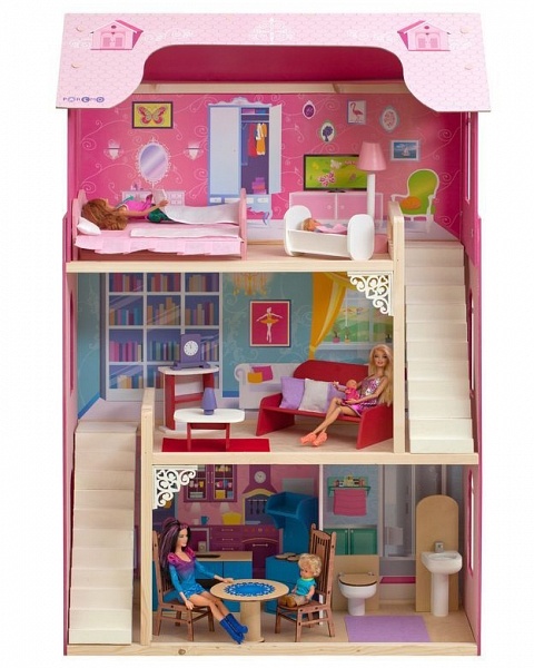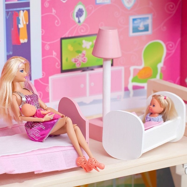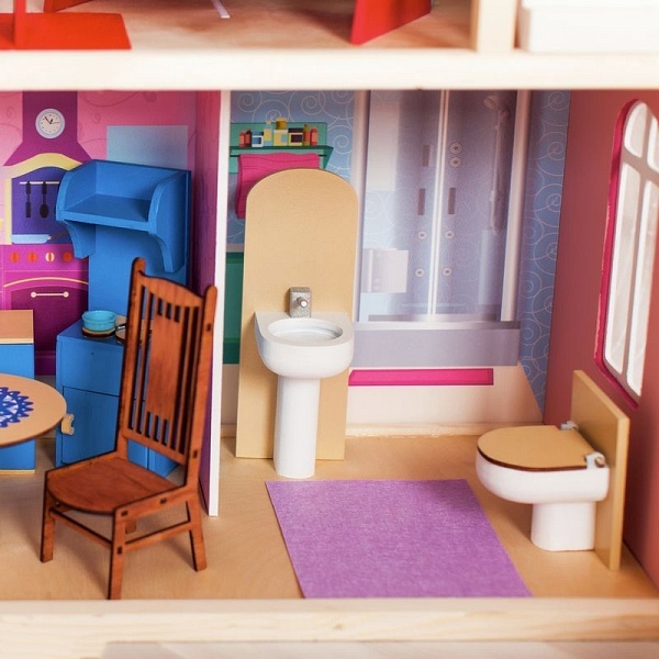 Недостатки: Комментарий: В домике есть вся необходимая мебель и даже техника. Он конечно тяжёлый, но мы его поставили в детскую и он не мешает. Видно,что он качественный и сам по себе крепкий.Теперь все куклы у нас живут в домике))