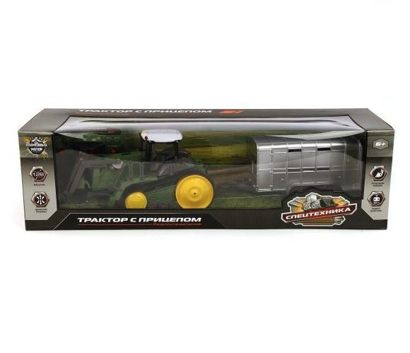 "Спецтехника" от компании "Пламенный мотор" - это радиоуправляемый трактор с прицепом, созданный по образу и подобию существующей на самом деле машины и представленный в масштабе 1 к 28. Сама игрушка, как и пульт управления работает на батарейках, которых в комплекте нет, поэтому их нужно будет приобрести отдельно. Прицеп легко отделяется от трактора, им управлять удаленно нельзя, в отличии от основной игрушки.