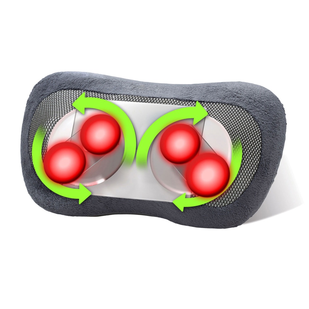 Встроенная функция подогрева подготавливает мышцы к массажу и повышает терапевтический эффект процедуры. Для надежной фиксации предусмотрено эластичное крепление, расположенное с тыльной стороны подушки. Подушка помещена в мягкий чехол, пригодный для бережной очистки.