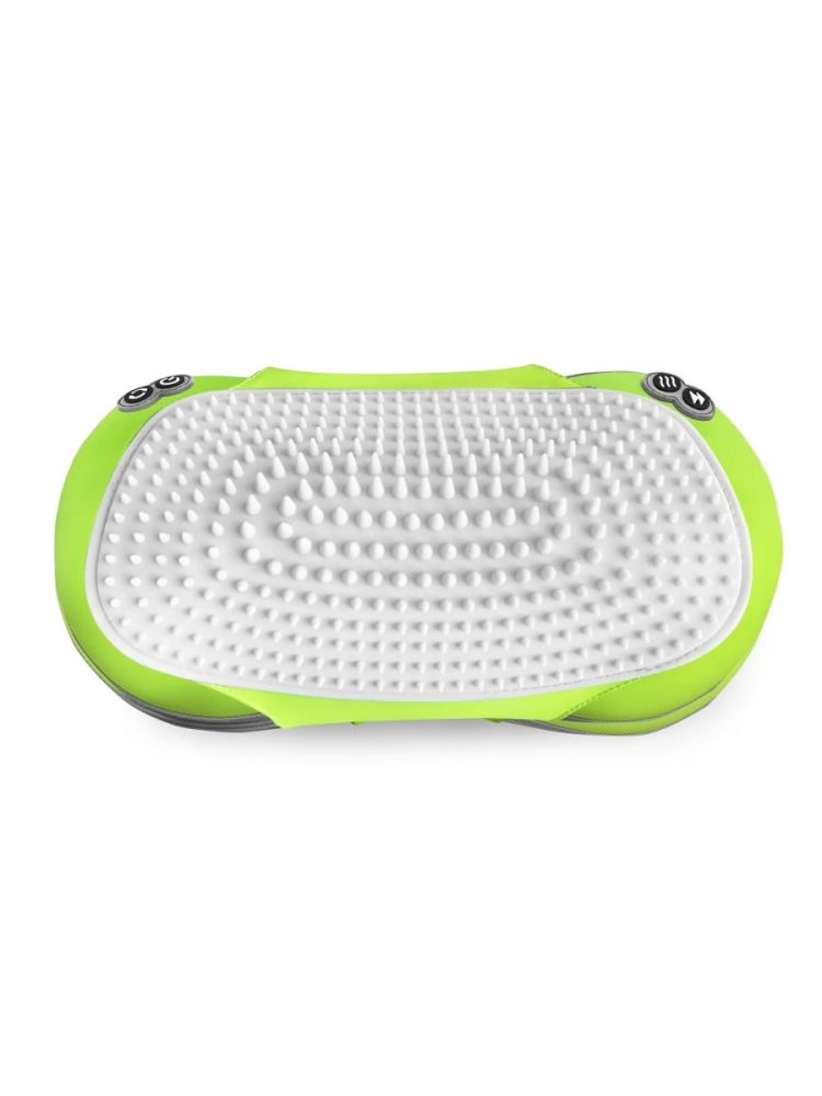 Компактная подушка оснащена вращающимися валиками, которые имитируют технику массажа шиацу. Устройство можно использовать для локального воздействия на разные участки тела. Питание осуществляется от сети, а также от прикуривателя в авто благодаря переходнику в комплекте.