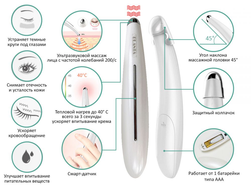 Прибор также оснащен функцией нагревания и охлаждения. Нагревание расслабляет кожу лица и стимулирует кровообращение. Ваша кожа становится мягче. Функция охлаждения помогает уменьшить припухлости на коже, закрыть поры и сделать кожу упругой и эластичной. Кнопка включения и 4 кнопки управления режимами удобно расположены на ручке прибора.