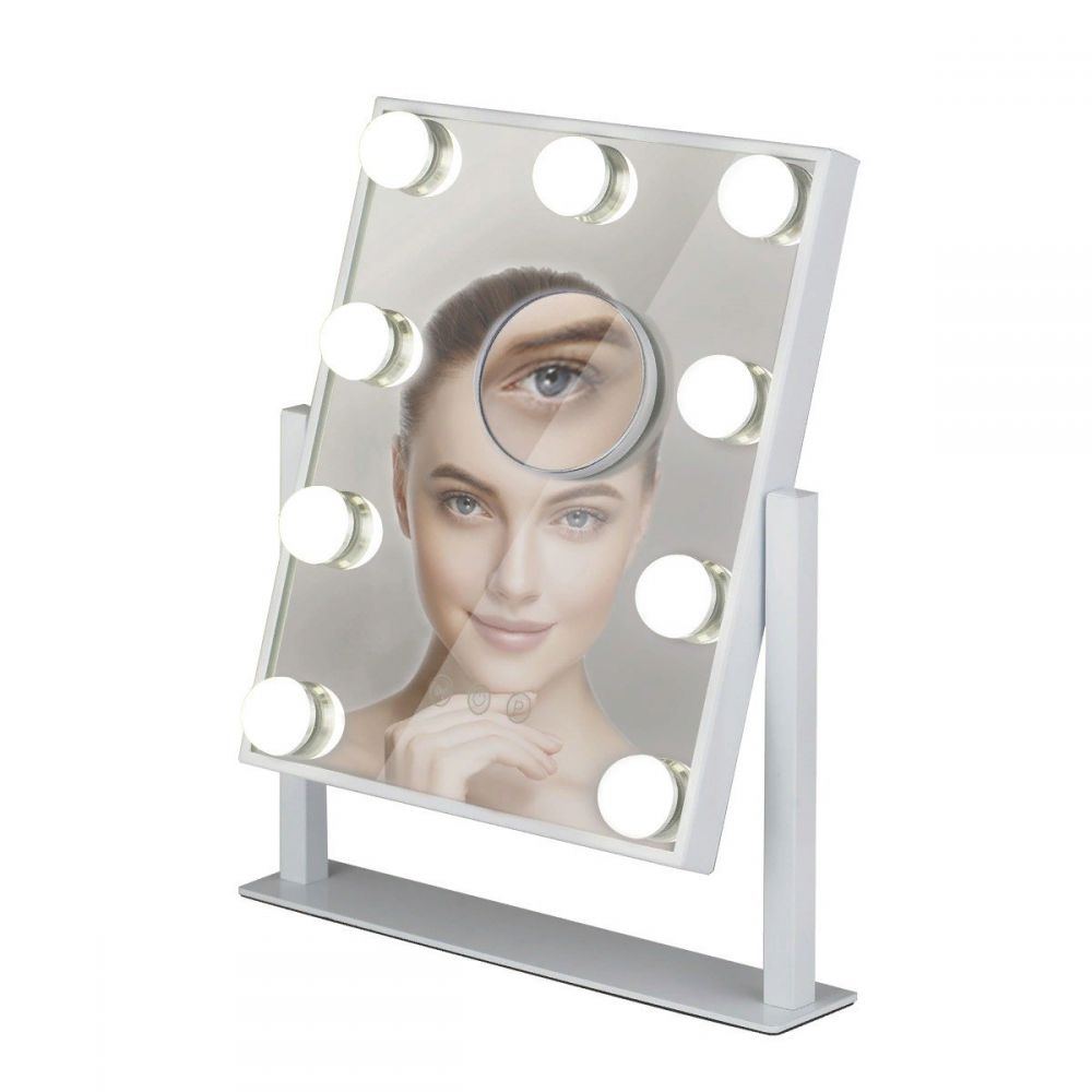 Роскошное косметическое зеркало Planta PLM-01109B Grand Hollywood с 3-мя видами подсветки и с дополнительным 10х увеличительным зеркалом. Великолепный дизайн в стиле Голливуд! Большой размер позволяет охватить лицо и зону декольте целиком. Супер яркая LED подсветка от 9 мощных ламп по периметру обеспечивает равномерное распределение освещенности на лице.