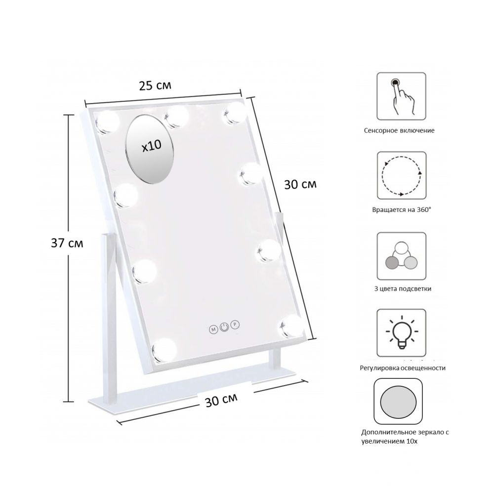 Достоинства: несколько видов подсветки, дополнительное увеличительное зеркало, 9 мощных ламп