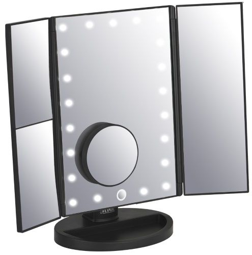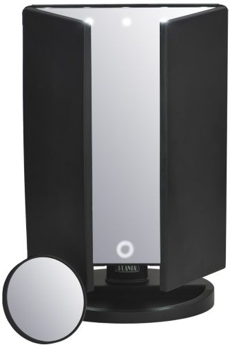 Центральная часть оснащена LED-лампами, которые обеспечивают яркую и равномерную подсветку. Сенсорная регулировка позволяет настраивать ее в соответствии с вашими потребностями. В качестве источника питания можно использовать как розетку — устройство подключается через специальный адаптер, так и 4 батарейки типа AAA. Зеркало Planta PLM-0132 TRIA поворачивается на шарнире, и за счет этого вы легко выберете удобный вам угол наклона.