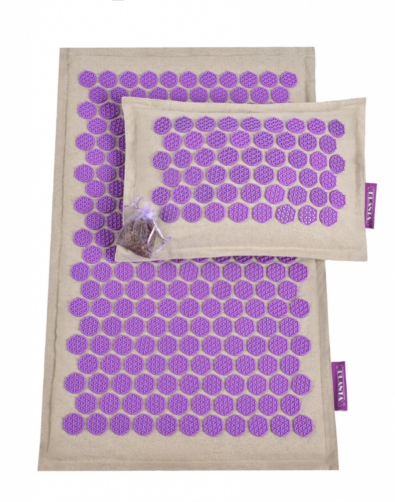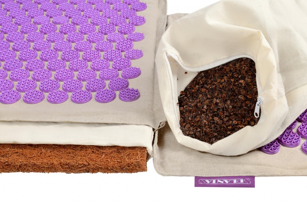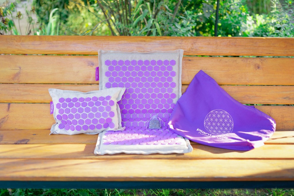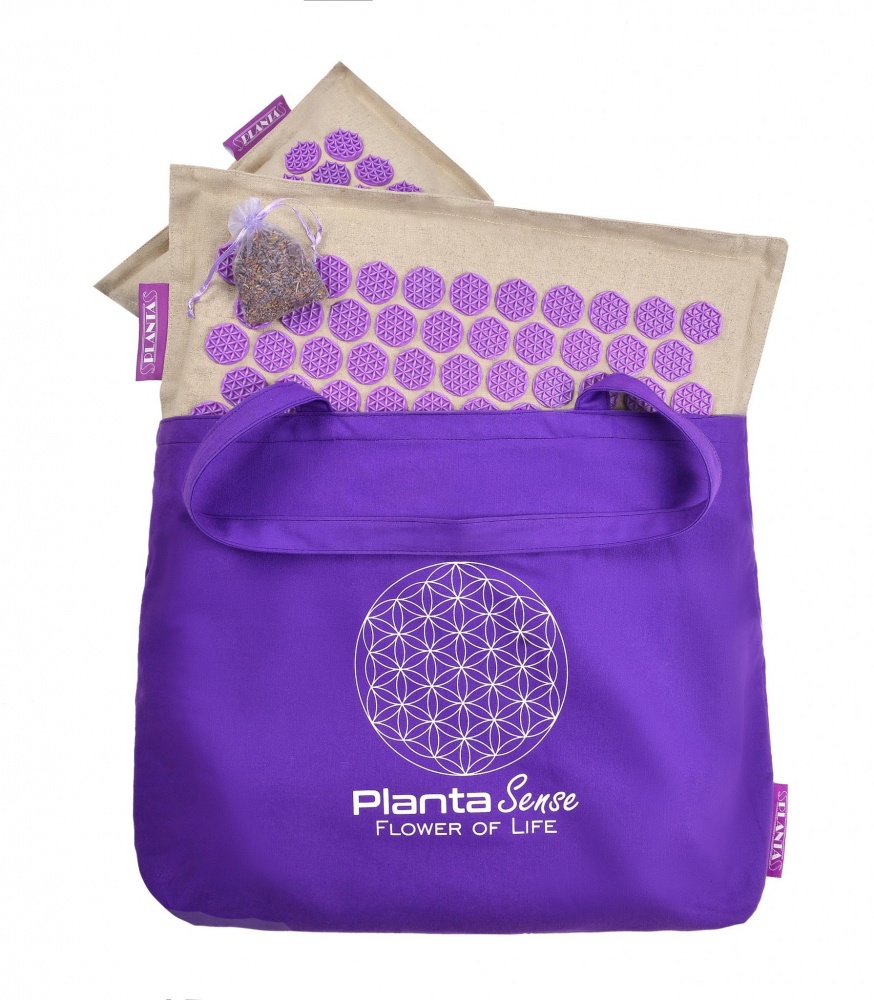 Акупунктурный массажный комплект с лавандовым саше Planta SENSE PS-SET1 - это массажные коврик и подушка нового поколения, созданы для массажа спины, шеи, плеч, поясницы, бедер, живота, ступней и ладоней и других частей тела. Вы сразу получаете полный комплект для массажа – коврик и подушку, а также сумку для хранения и переноски. Комплект изготовлен из льна, хлопка, кокосового волокна и гречишной шелухи, а аппликаторы из высококачественного гипоаллергенного и экологичного 100% HIPS пластика в форме Цветка Жизни Flower of Life. Коврик имеет 221 аппликатор, подушка – 51.
