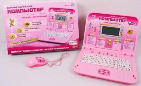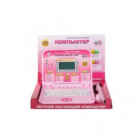 Обучающий компьютер произведен в ярко-розовом цвете, что делает его по-настоящему девчачьим. Такой компьютер-ноутбук можно взять с собой в гости к бабушке или на отдых на природе, чтобы не прерывать своего обучения. Компьютер имеет небольшой экран, интерактивные кнопки, а также инструкцию, размещенную на одной панели вместе с экраном. Компьютер оснащен 35 функциями, позволяющими обучаться весело и играючи, также есть 11 развивающих игр и 7 веселых мелодий, которые будут поднимать настроение ребенку день ото дня.