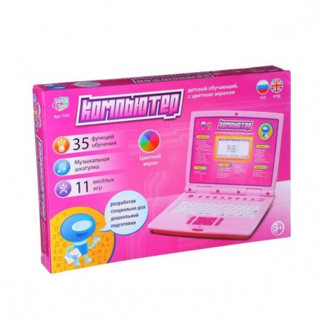 Замечательный детский развивающий компьютер для девочек розового цвета.