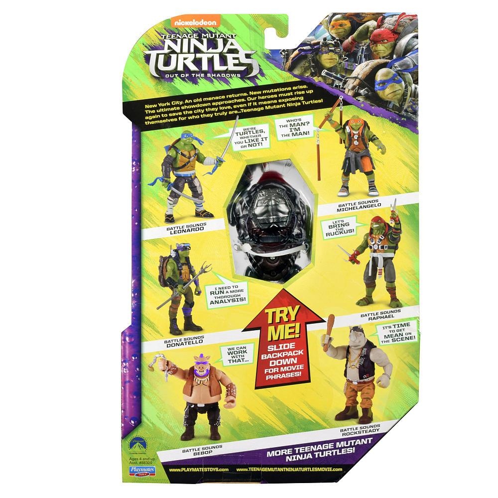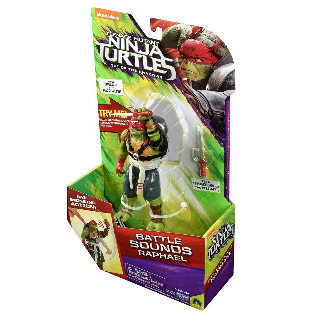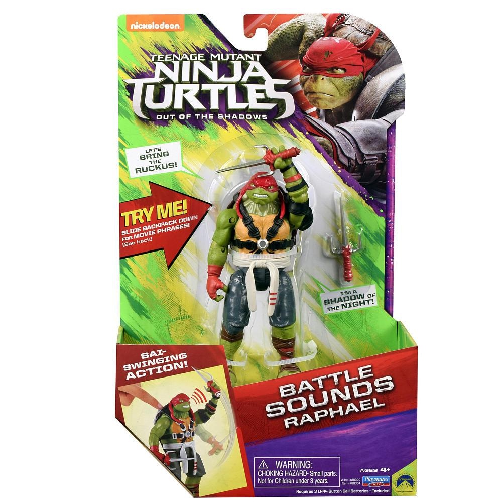 Замечательная фигурка Рафаэля выполнена по образу и подобию персонажа комиксов, она узнаваема благодаря тщательному и детальному исполнению всех элементов боевого снаряжения и экипировки черепашки. На лице у Рафаэля красная маска, его клинки можно вложить в руки фигурки и разыграть любимую сцену из нового фильма о черепашках. Фигурка снабжена звуковыми эффектами.