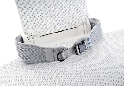 Сидение и спинка подъемника имеют съемные чехлы, допускающие машинную стирку. Устройство оборудовано ремнями безопасности для удерживания тела пользователя.
