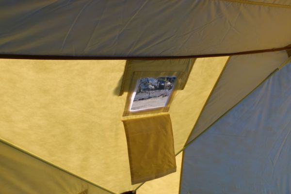 Палатка оснащена: двумя входами, четырьмя вентиляционными окнами со съемными прозрачными клапанами, которыми можно регулировать поток поступающего воздуха в палатку, четырьмя смотровыми окнами, двумя клапанами притока свежего воздуха; двумя сетчатыми полками на потолке и двумя сетчатыми карманами на стенах палатки, в которые очень удобно складывать снаряжение.