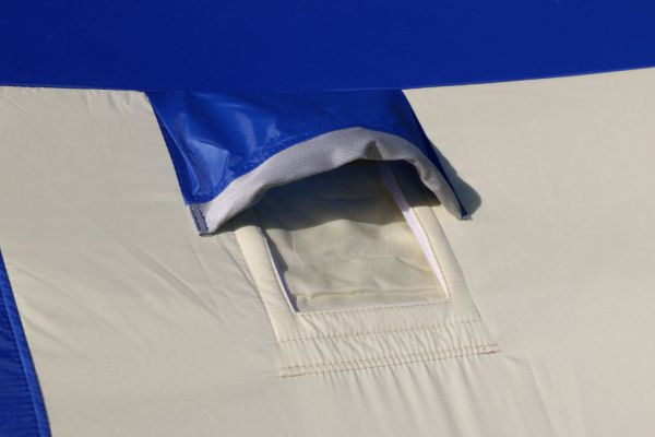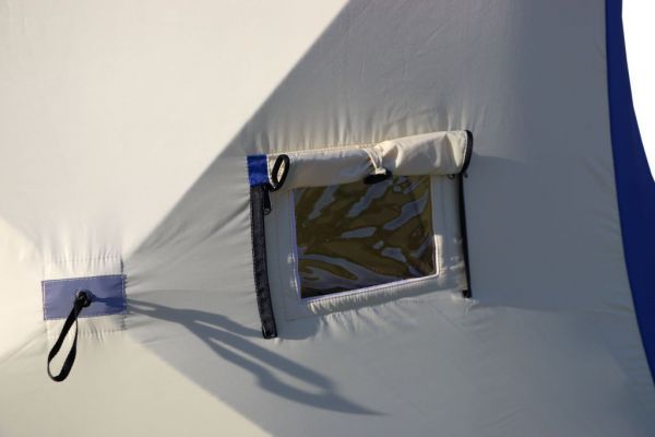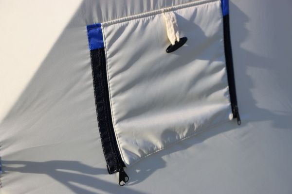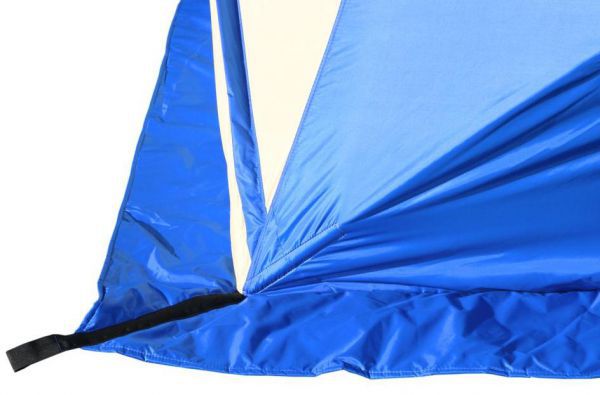 Также палатка оснащена двумя внутренними юбками с системой крепления пола, которая полностью исключает проникновение холодного воздуха внутрь палатки, что очень важно для рыбалки при сильном ветре и низкой температуре.